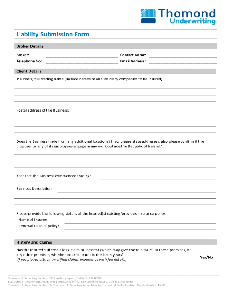 Get the free Liability Submission Form