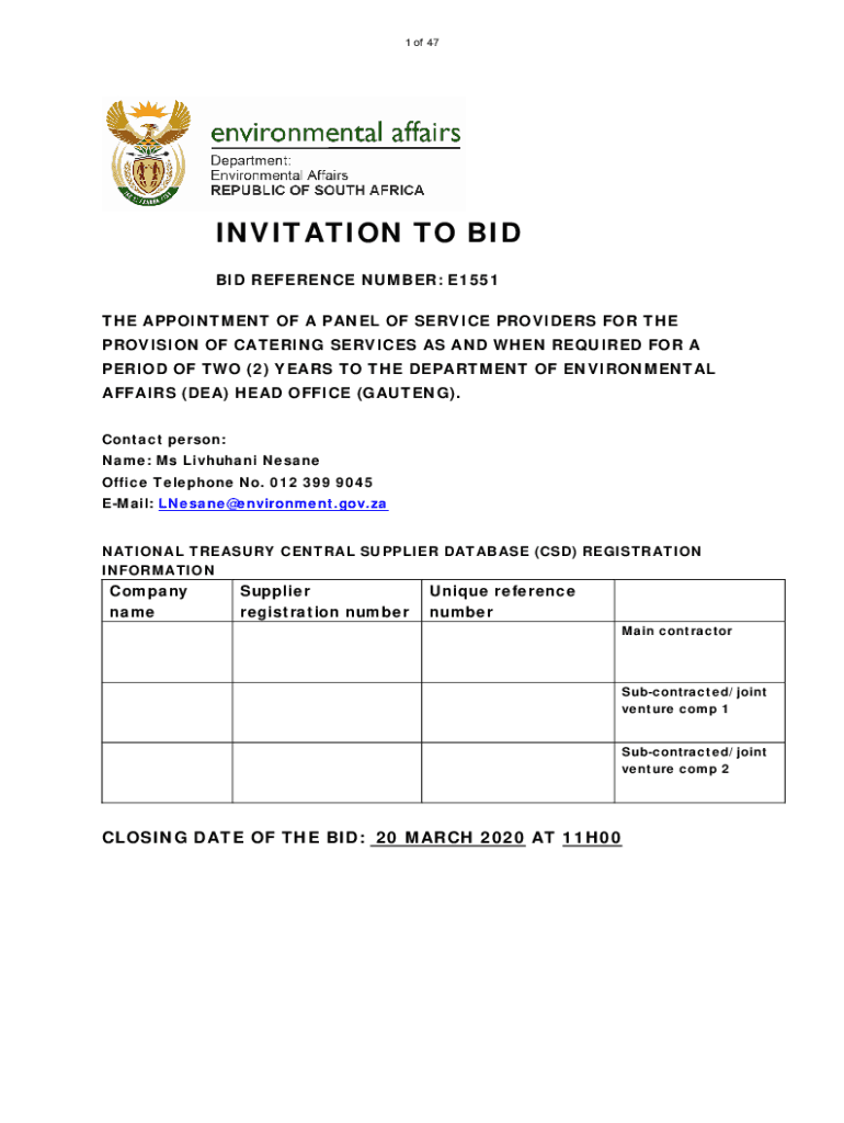 1 of 47INVITATION TO BID REFERENCE NUMBER: E1551