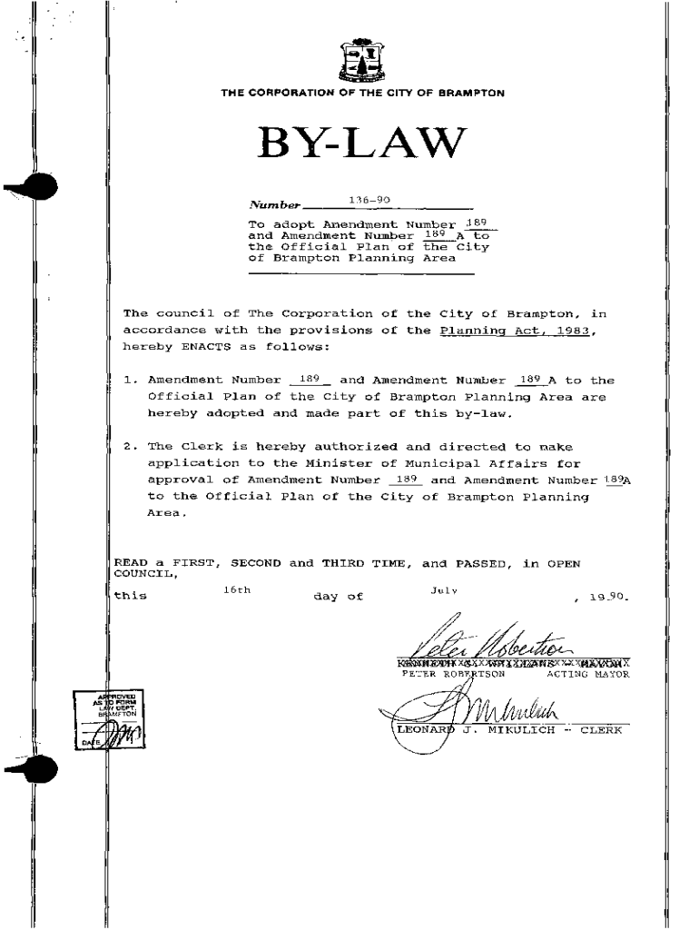 and Amendment Number 189 A Official Plan of the City