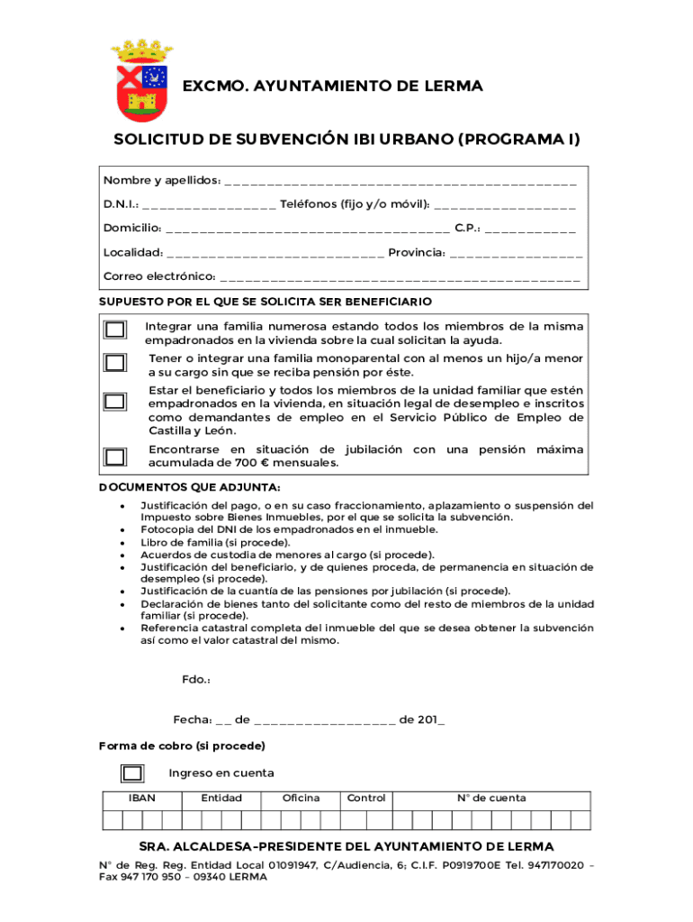 SOLICITED DE SUBVENTION FBI URBAN (PROGRAM I)