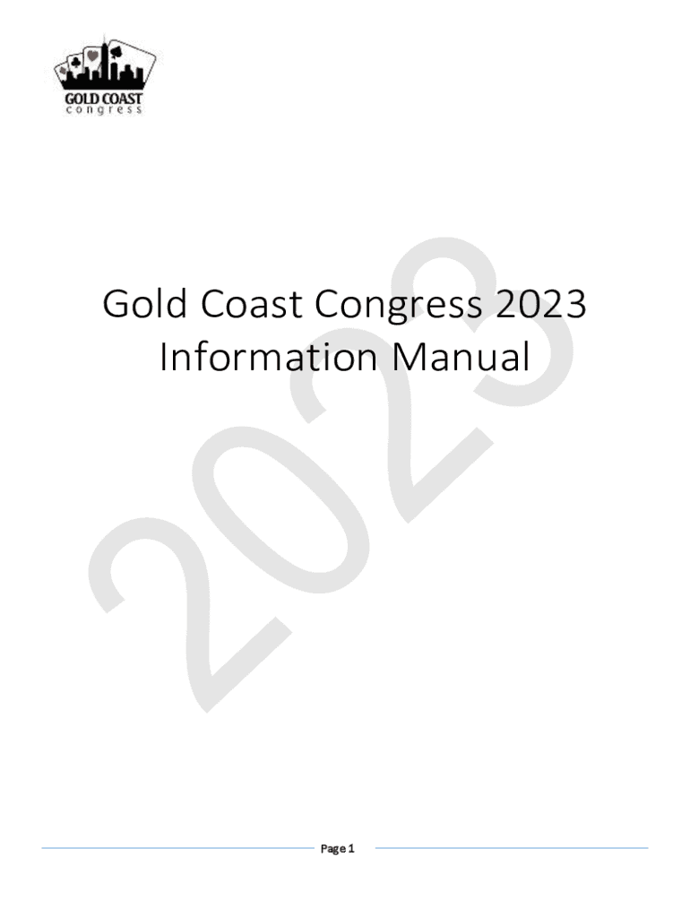 Gold Coast Congress 2023 Information Manual Page 1GOLD COAST CONGRESS INFORMATION Manageable of Contents 2023 DATES ....................................................................................................................................
