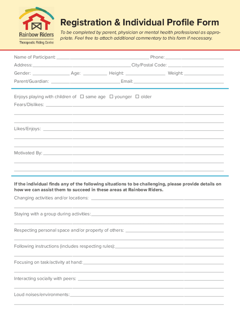 Registration & Individual Profile Form be completed by parent, physician or mental health professional as appropriate. Feel free to attach additional commentary to this form if necessary. Name of