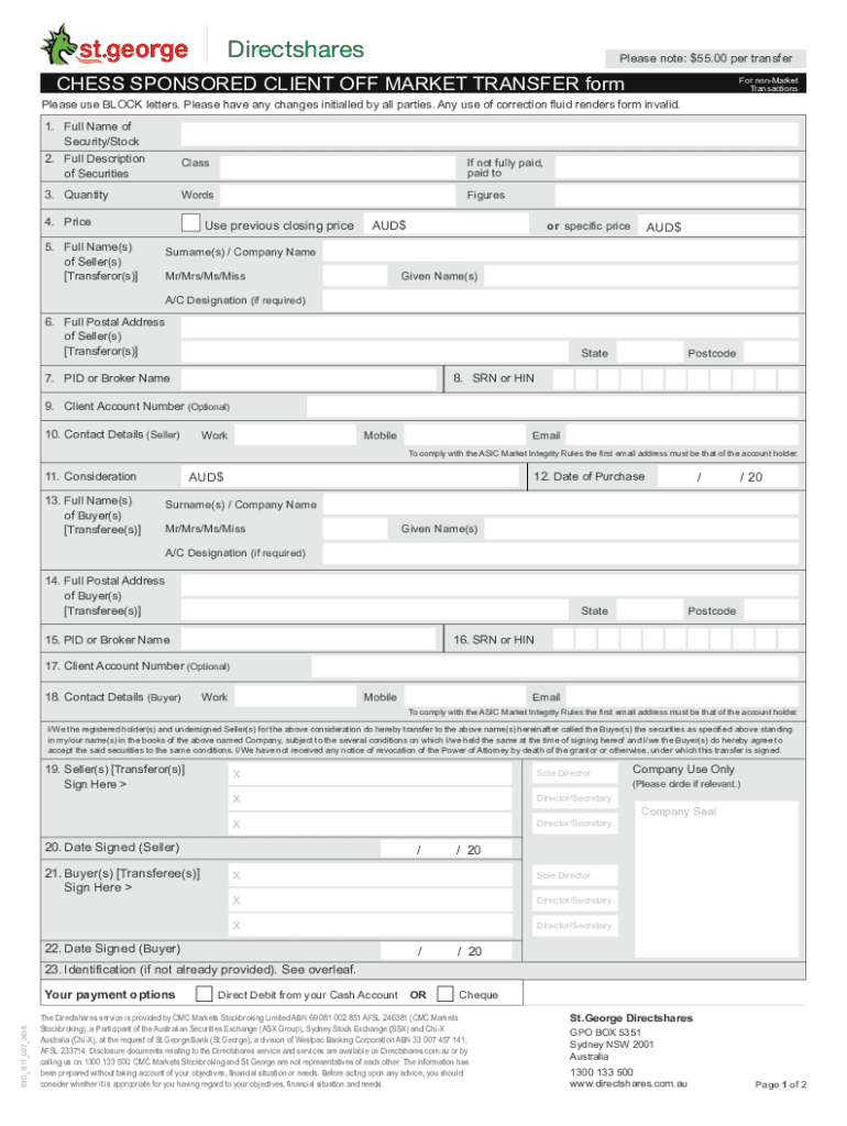 DirectsharesPlease note: $55.00 per transferases SPONSORED CLIENT OFF MARKET TRANSFER former downmarket