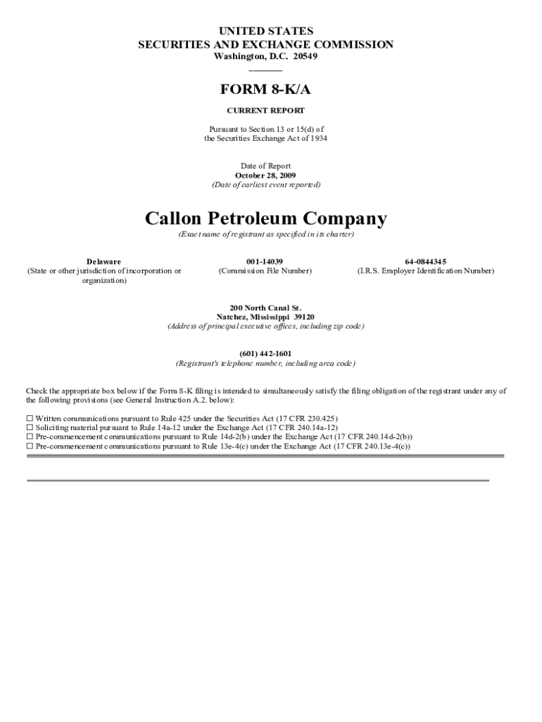 UNITED STATES SECURITIES AND EXCHANGE COMMISSION Washington, D.C. 20549 ___FORM 8K/A CURRENT REPORT Pursuant to Section 13 or 15(d) of the Securities Exchange Act of 1934 Date of Report October 28,
