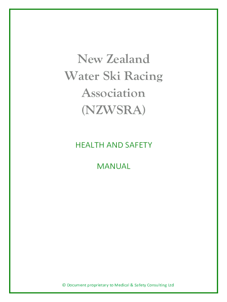 HEALTH AND SAFETYMANUAL Document proprietary to Medical & Safety Consulting Liftable OF Contents Zealand Water Ski Racing Association Health and Safety Policy StatementDocument Control...1
