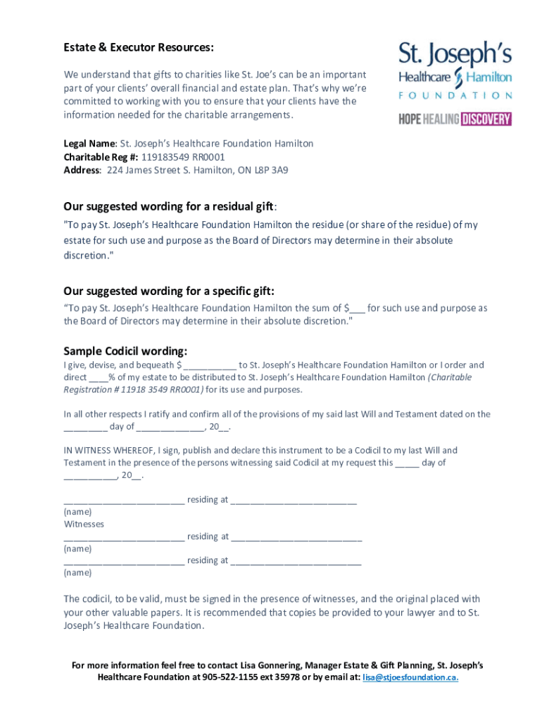 Estate & Executor Resources: We understand that gifts to charities like St. Joe scan be an important part of your clients overall financial and estate plan. That's why were committed to working with