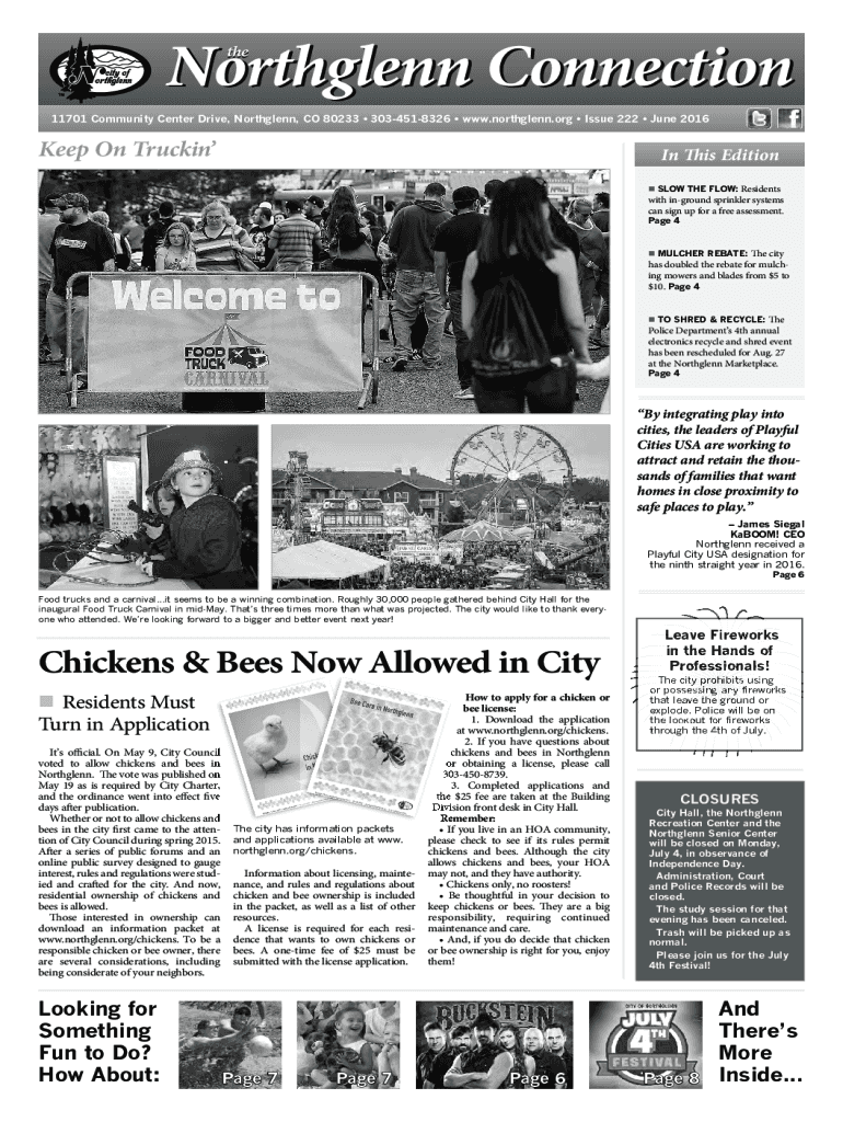 the11701 Community Center Drive, Northglenn, Co 80233 3034518326 www.northglenn.org Issue 222 June 2016Keep On Trucking This Edition