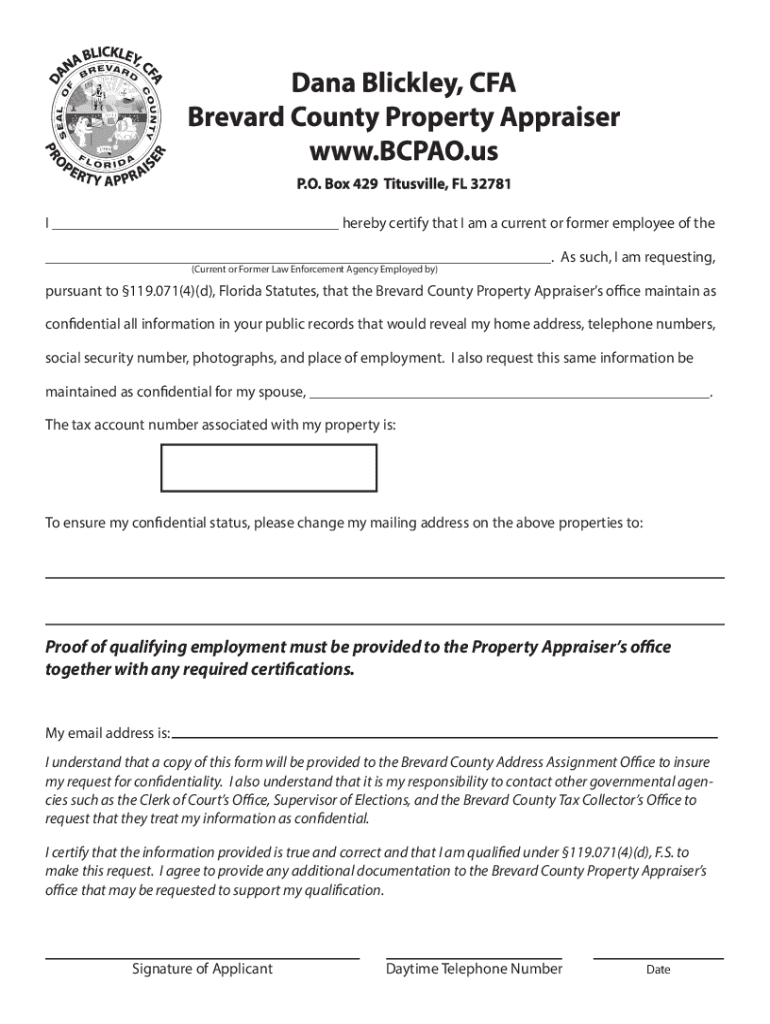 I ___ hereby certify that I am a current or former employee of the ___. As such, I am requesting, (Current or Former Law Enforcement Agency Employed by)pursuant to 119.071(4)(d), Florida Statutes,