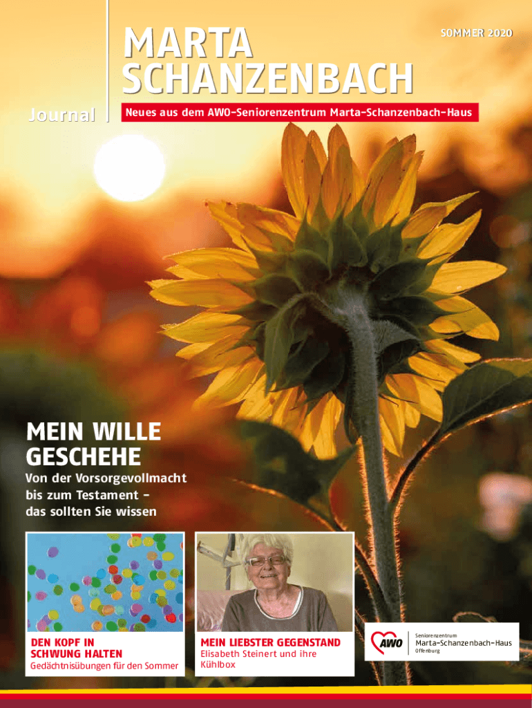 JournalSOMMER 2020Neues AUS them AWOSeniorenzentrum MartaSchanzenbachHausSeniorenzentrumSonnenhalde