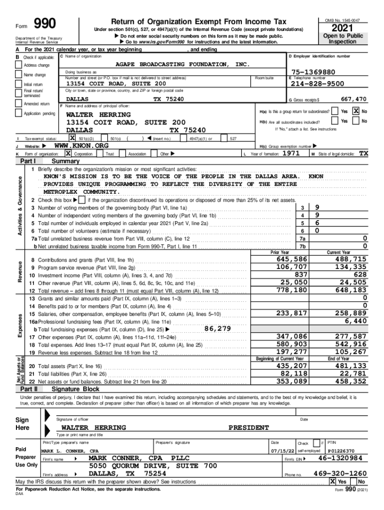 Form990Return of Organization Exempt From Income Department of the Treasury