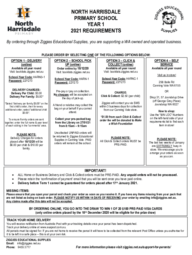NORTH HARTSDALE PRIMARY SCHOOL YEAR 1 2021 REQUIREMENTS By ordering through Piggies Educational Supplies, you are supporting a WA owned and operated business. PLEASE ORDER BY SELECTING ONE OF THE