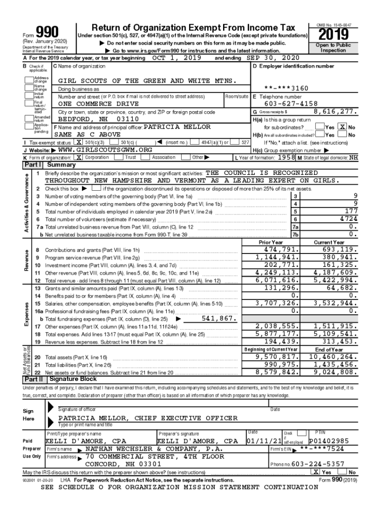 990OMB No. 15450047Return of Organization Exempt From Income Reinform (Rev. January 2020)2019Under section 501(c), 527, or 4947(a)(1) of the Internal Revenue Code (except private foundations) | Do