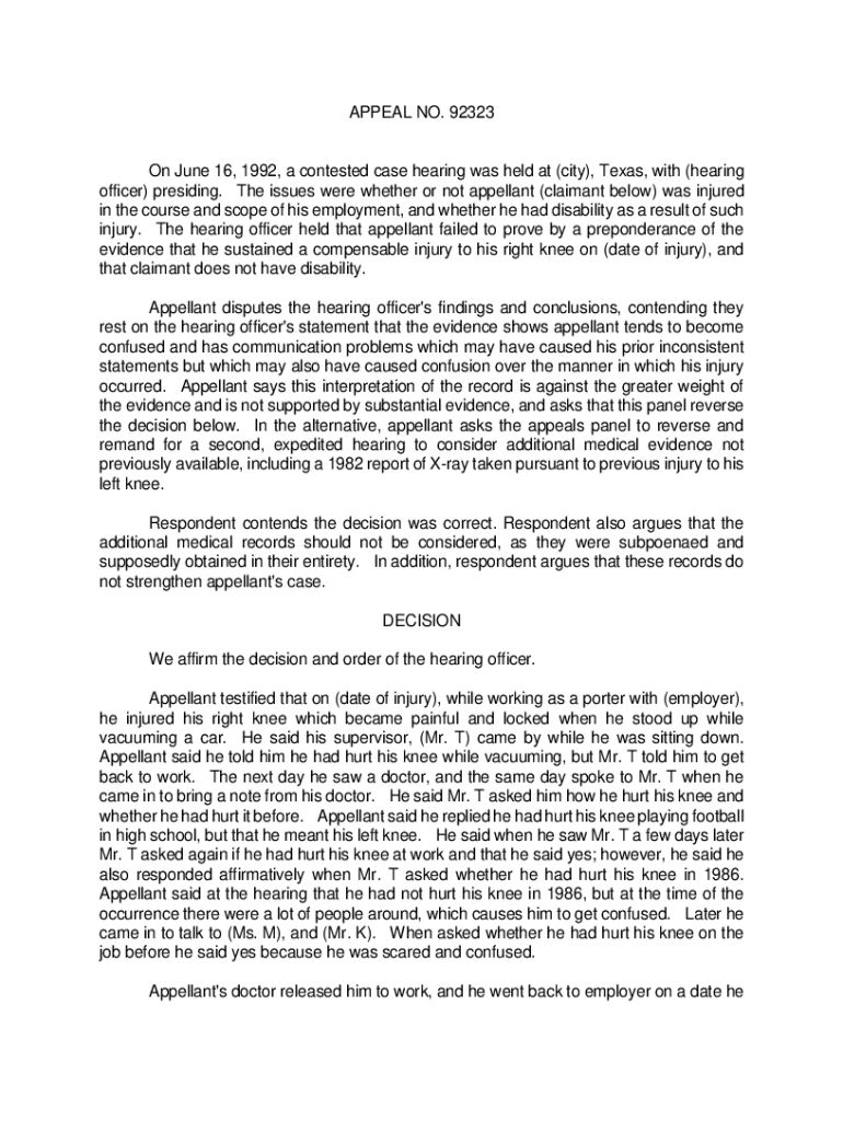 Get the free APPEAL NO. 92332 A contested case hearing was held at ...