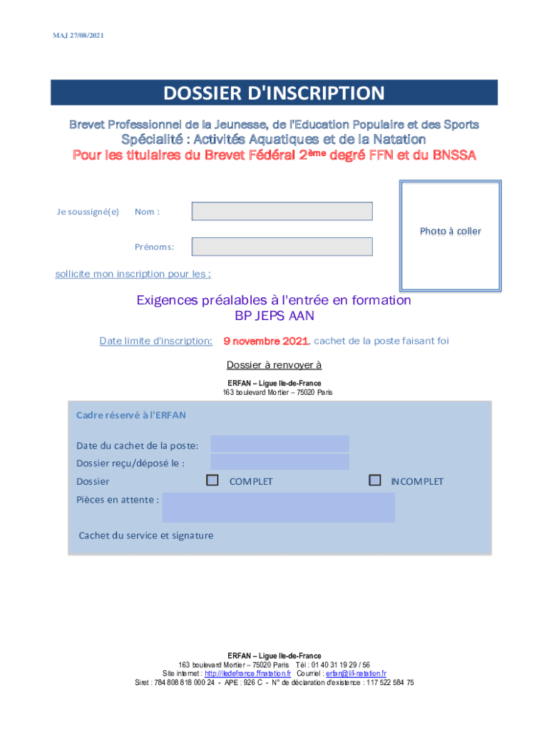 MAJ 27/08/2021FICHE COMPLETE ET INSCRIPTIONBrevet Professional JEWS