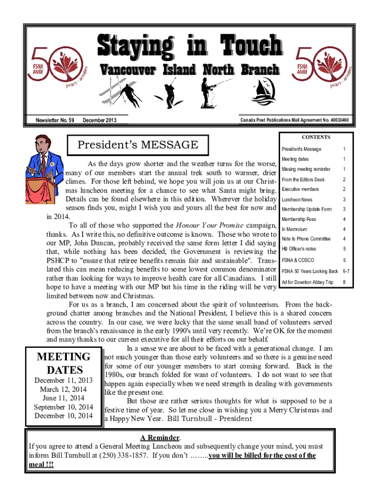 Newsletter No. 59December 2013Presidents MESSAGE Canada Post Publications Mail Agreement No. 40033460CONTENTS Presidents Message1Meeting dates1As the days grow shorter and the weather turns for the