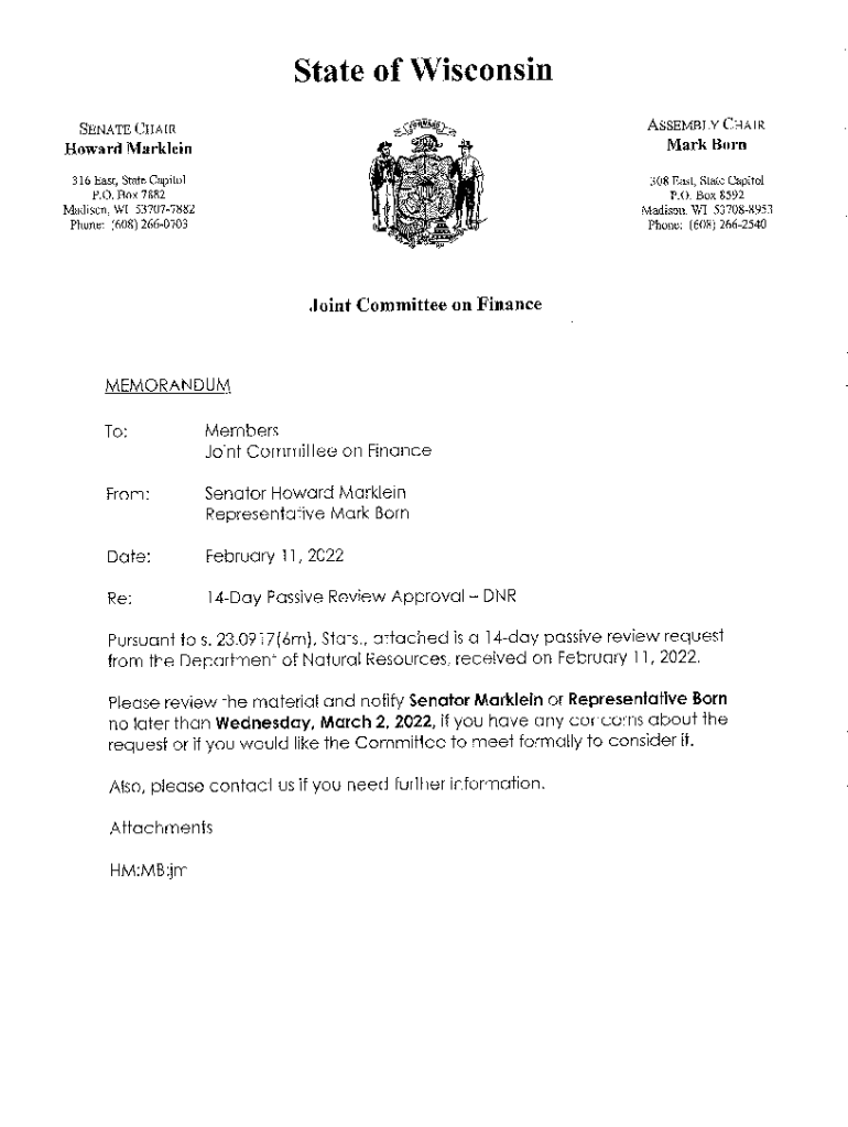DocuSign Envelope ID: 30E54A9DDB6F4093B3AD59FA5DF4299CCORRESPONDENCE/MEMORANDUM DATE:February 10, 2022TO:Members of the Joint Committee on FinanceFROM:Preston D. Cole, SecretaryState of WisconsinSUBJECT:
