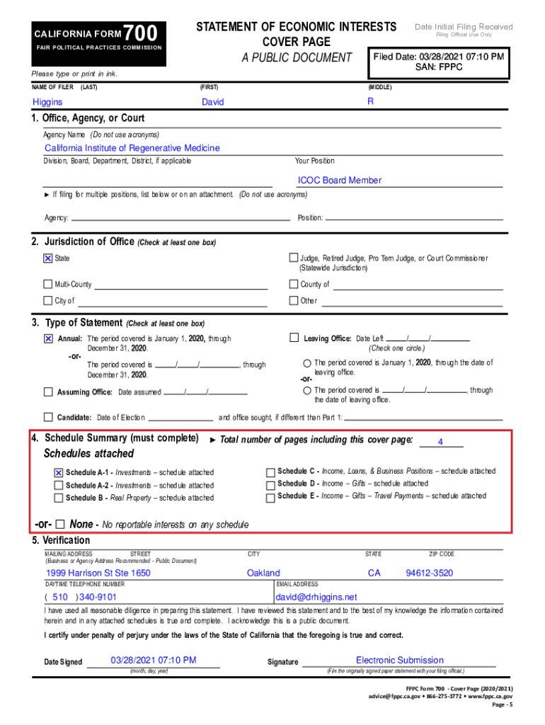CALIFORNIA Formfitting Received STATEMENT OF ECONOMIC INTERESTS Date Initial Filing Official Use Only COVER PAGE Filed Date: 03/28/2021 07:10 PM A PUBLIC DOCUMENT700FAIR POLITICAL PRACTICES COMMISSION