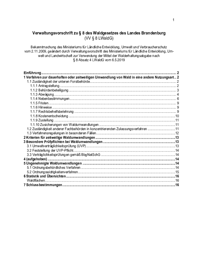1Verwaltungsvorschrift EU 8 DES Waldgesetzes DES Lands Brandenburg