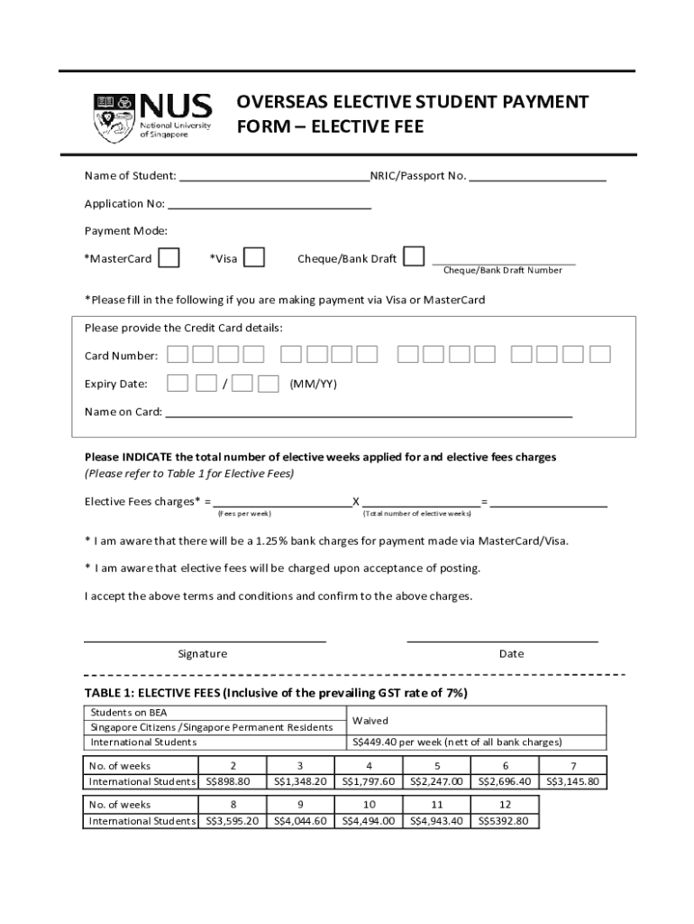 OVERSEAS ELECTIVE STUDENT PAYMENT FORM ELECTIVE FEE Name of Student:ERIC/Passport No. Application No: Payment Mode: *MasterCard×VisaCheque/Bank DraftCheque/Bank Draft Number×Please fill in the following