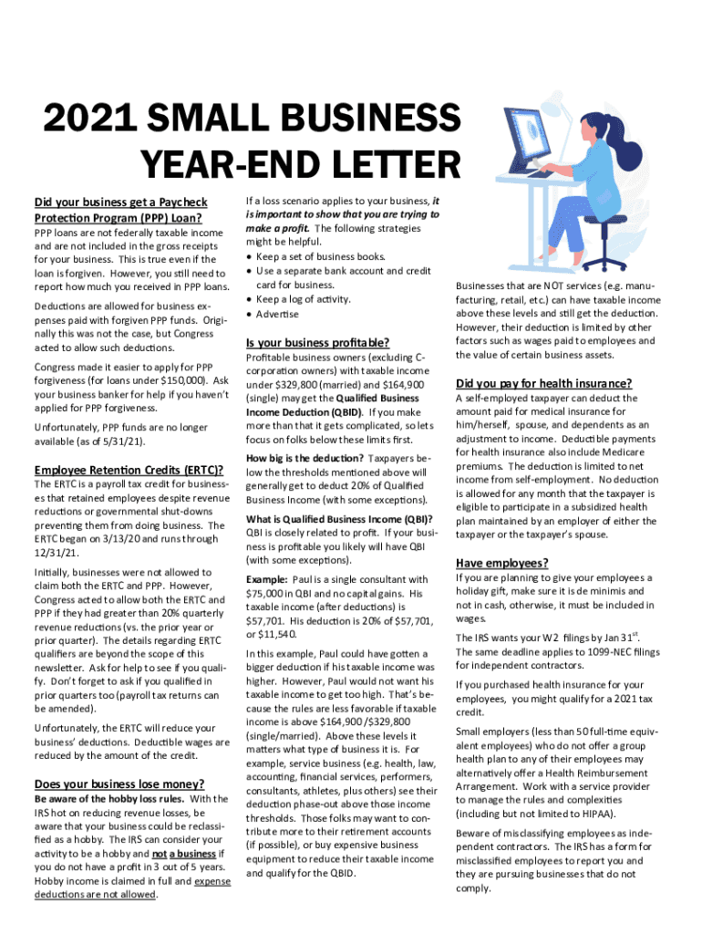 2021 SMALL BUSINESS YEAREND LETTER Did your business get a Paycheck Protection Program (PPP) Loan? PPP loans are not federally taxable income and are not included in the gross receipts for your business.