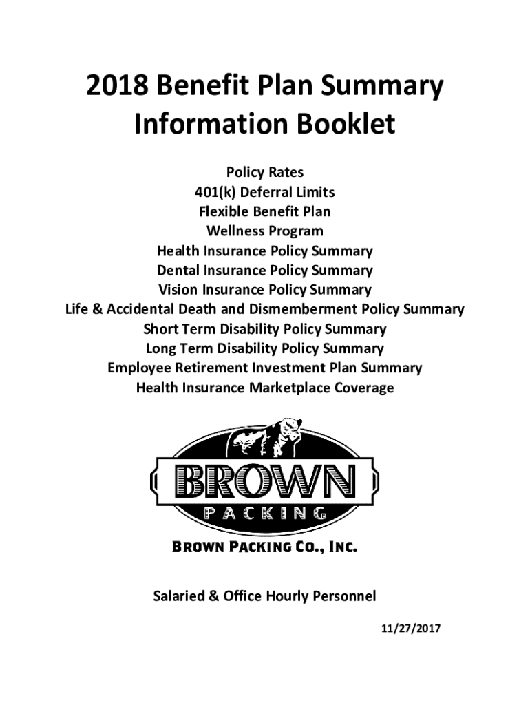 2018 Benefit Plan Summary Information Booklet Policy Rates 401(k) Deferral Limits Flexible Benefit Plan Wellness Program Health Insurance Policy Summary Dental Insurance Policy Summary Vision Insurance