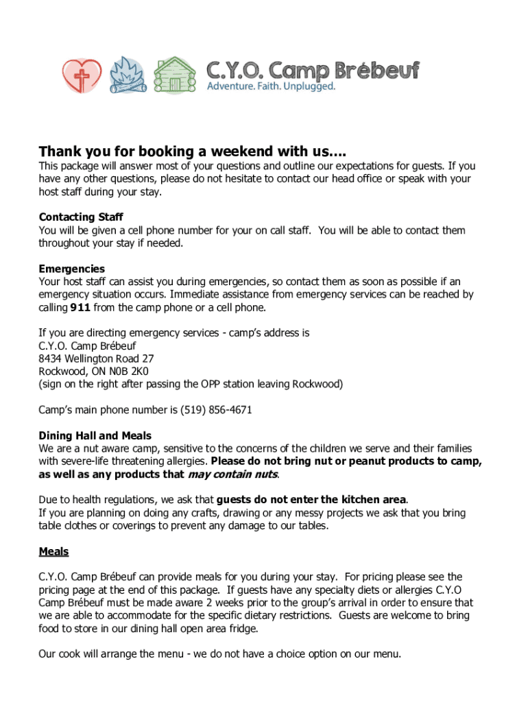 Thank you for booking a weekend with us. This package will answer most of your questions and outline our expectations for guests. If you have any other questions, please do not hesitate to contact