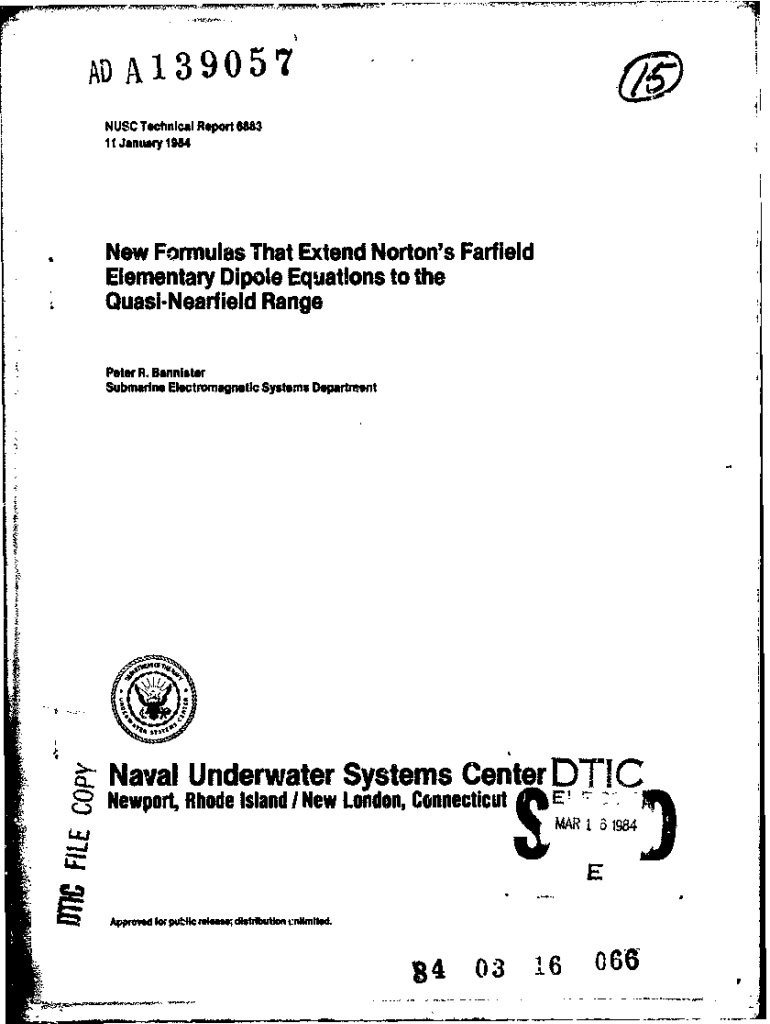 AD 139057NUSC Technical Repot 688311 January 1084New Formulas That Extend Norton\'s Fairfield