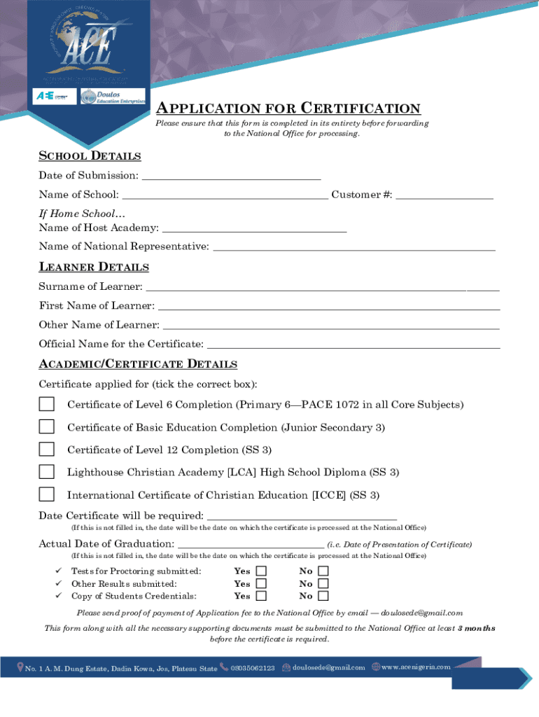 Students who are enrolled in an Accelerated Christian Education program may need to fill out ACE office forms for purposes such as enrollment, academic record updates, or other administrative requirements.