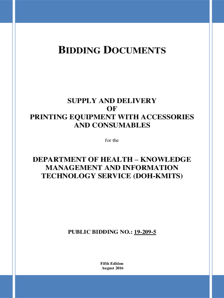 BIDDING DOCUMENTSSUPPLY AND DELIVERY OF PRINTING EQUIPMENT WITH ACCESSORIES AND CONSUMABLES for department OF HEALTH KNOWLEDGE MANAGEMENT AND INFORMATION TECHNOLOGY SERVICE (COMMITS)PUBLIC BIDDING