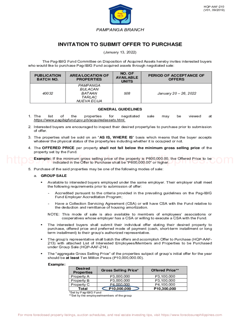 HQPAAF210 (V01, 09/2019)CAMPAIGN BRANCHINVITATION TO SUBMIT OFFER TO PURCHASE (January 13, 2022) The Paging Fund Committee on Disposition of Acquired Assets hereby invites interested buyers who would
