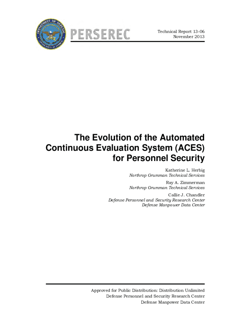 Technical Report 1306 November 2013The Evolution of the Automated Continuous Evaluation System (ACES) for Personnel Security Katherine L. Her big Northrop Grumman Technical Services Ray A. Zimmerman