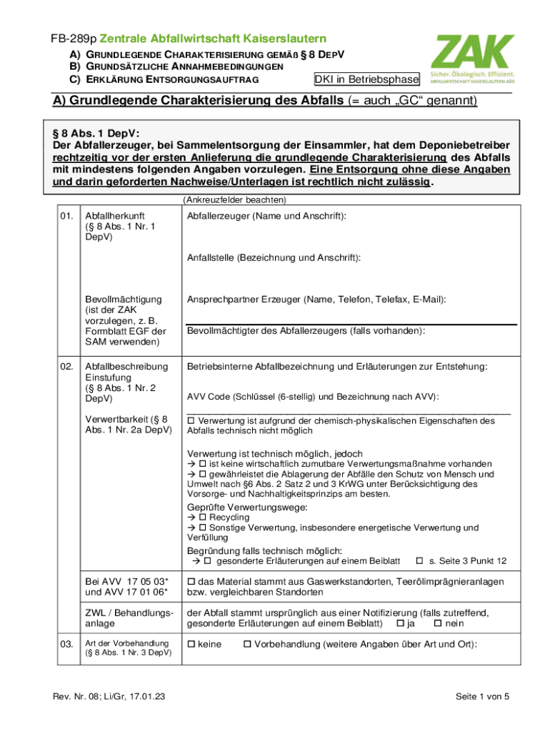 Holen Sie sich kostenlos A) Grundlegende Charakterisierung des Abfalls ( auch...