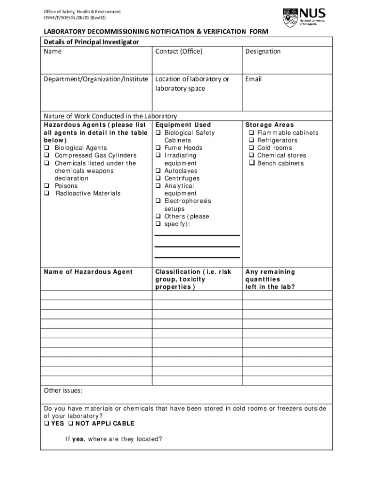 Get the free laboratory decommissioning notification & verification form - chemistry nus edu