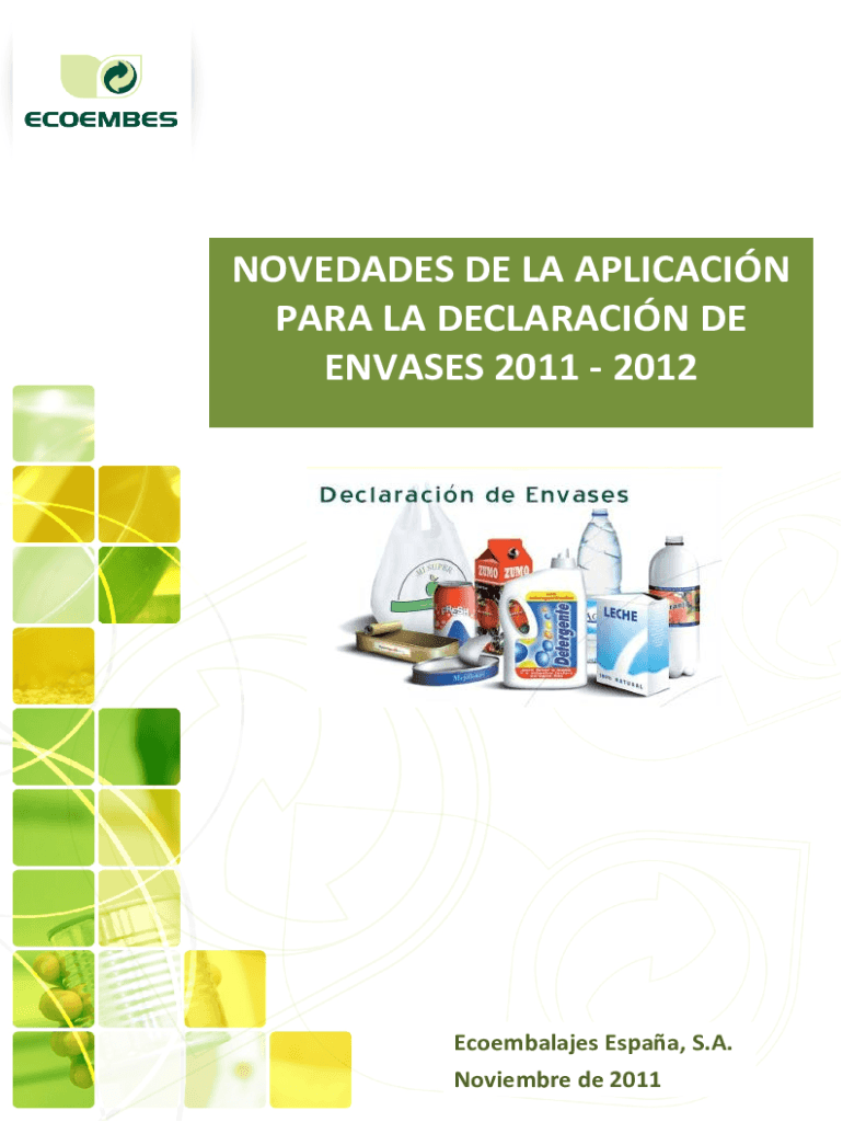 NOVELTIES DE LA APPLICATION PARA LA DECLARATION DE ENCASES 2011 2012Ecoembalajes ESAA, S.A. November de 2011NOVEDADES DE LA APPLICATION PARA LA DECLARATION DE ENCASES 2011 2012INDICE 1 Mantillas de