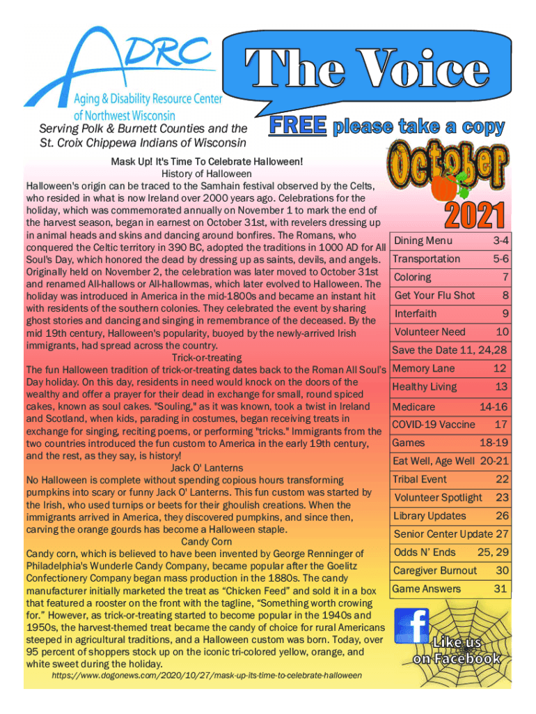 Serving Polk & Burnett Counties and the St. Croix Chippewa Indians of Wisconsin Mask Up! It\'s Time To Celebrate Halloween! History of Halloween\'s origin can be traced to the Samoan festival observed