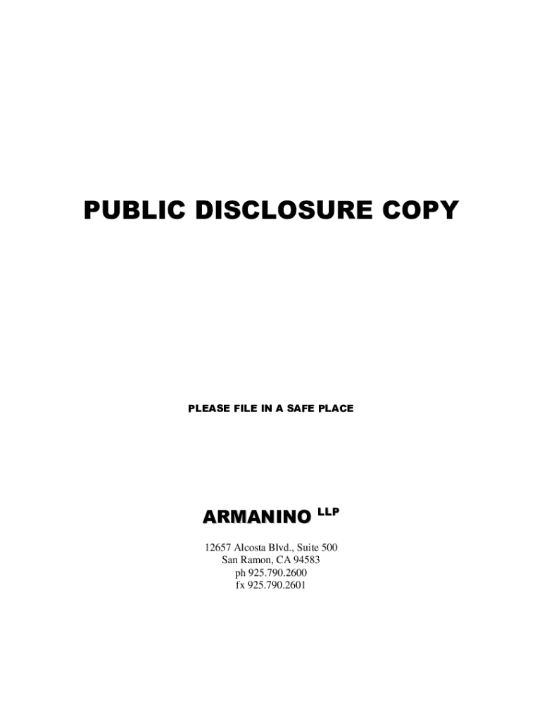 PUBLIC DISCLOSURE COPYPLEASE FILE IN A SAFE PLACEARMANINO LLP