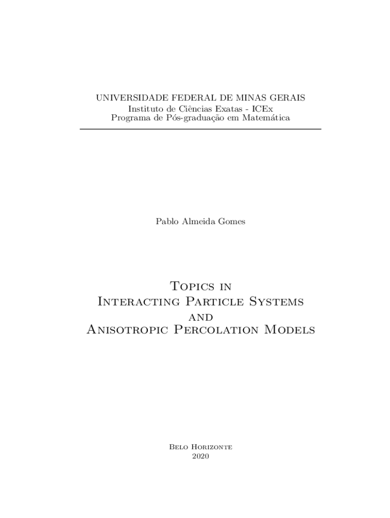 Get the free Topics in Interacting Particle Systems and Anisotropic ... - mat.ufmg.br