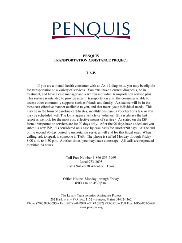 Get the free Penquis CAP, Inc. Lynx Mobility Services Contact Information