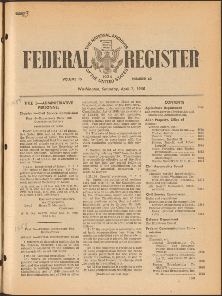 VOLUME 15\'934^* //CITED NUMBER 63Washington, Saturday, April 1, 1950,