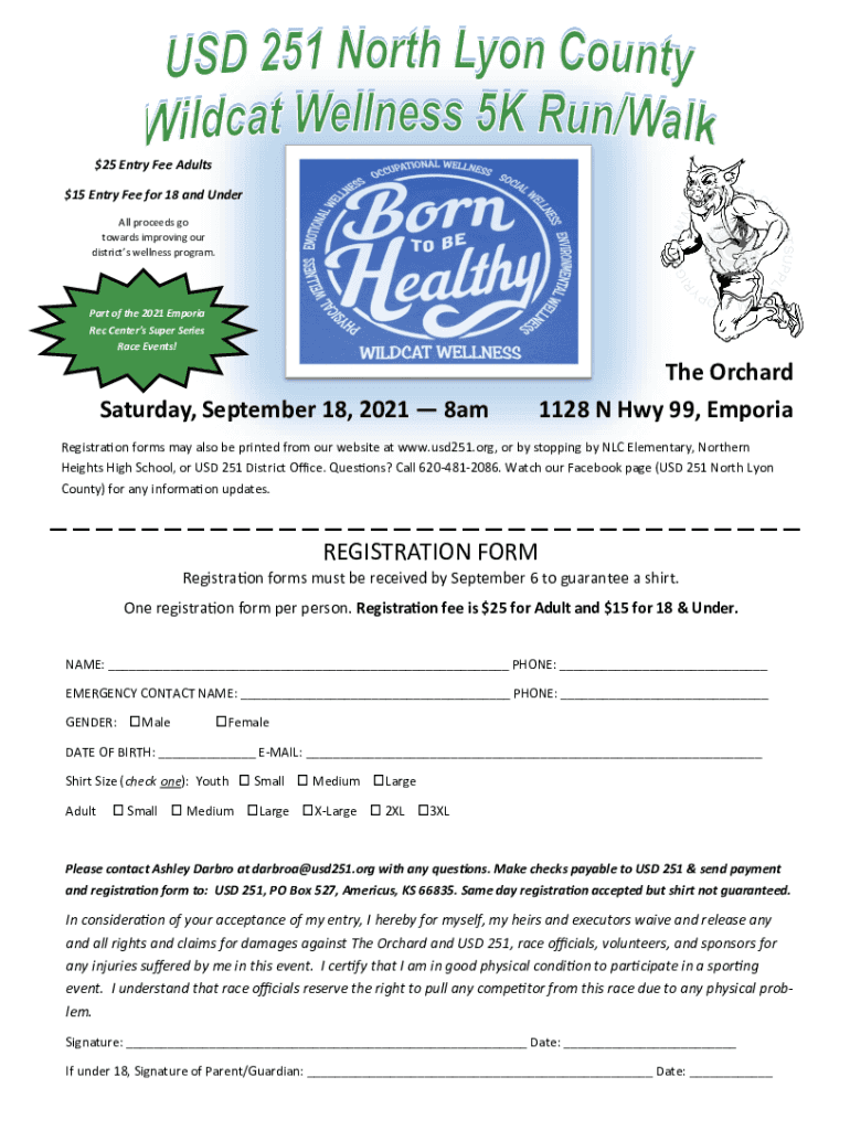 $25 Entry Fee Adults $15 Entry Fee for 18 and Under All proceeds go towards improving our districts wellness program. Part of the 2021 Emporia Rec Centers Super Series Race Events! Saturday, September