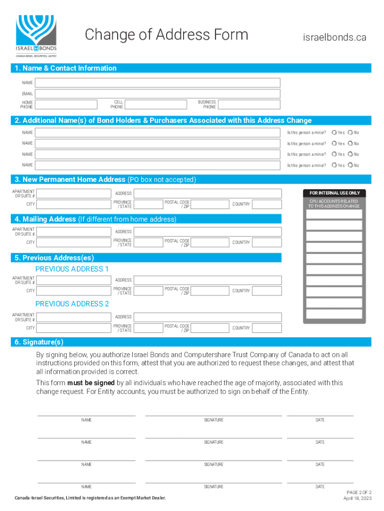 Change of Address Formisraelbonds. Important INFORMATION Computer share Trust Company of Canada, the fiscal agent for the State of Israel, requires notification of your address change 15 business