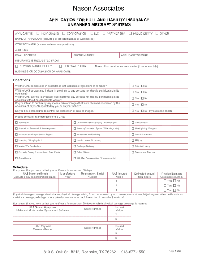 APPLICATION FOR HULL AND LIABILITY INSURANCE