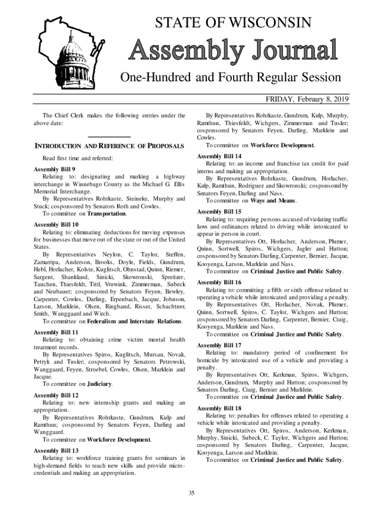 STATE OF WISCONSINOneHundred and Fourth Regular Session