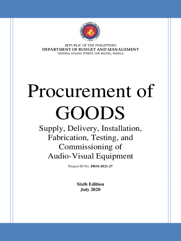 REPUBLIC OF THE PHILIPPINESDEPARTMENT OF BUDGET AND MANAGEMENT GENERAL SOLANO STREET, SAN MIGUEL, MANILAProcurement of GOODS Supply, Delivery, Installation, Fabrication, Testing, and Commissioning