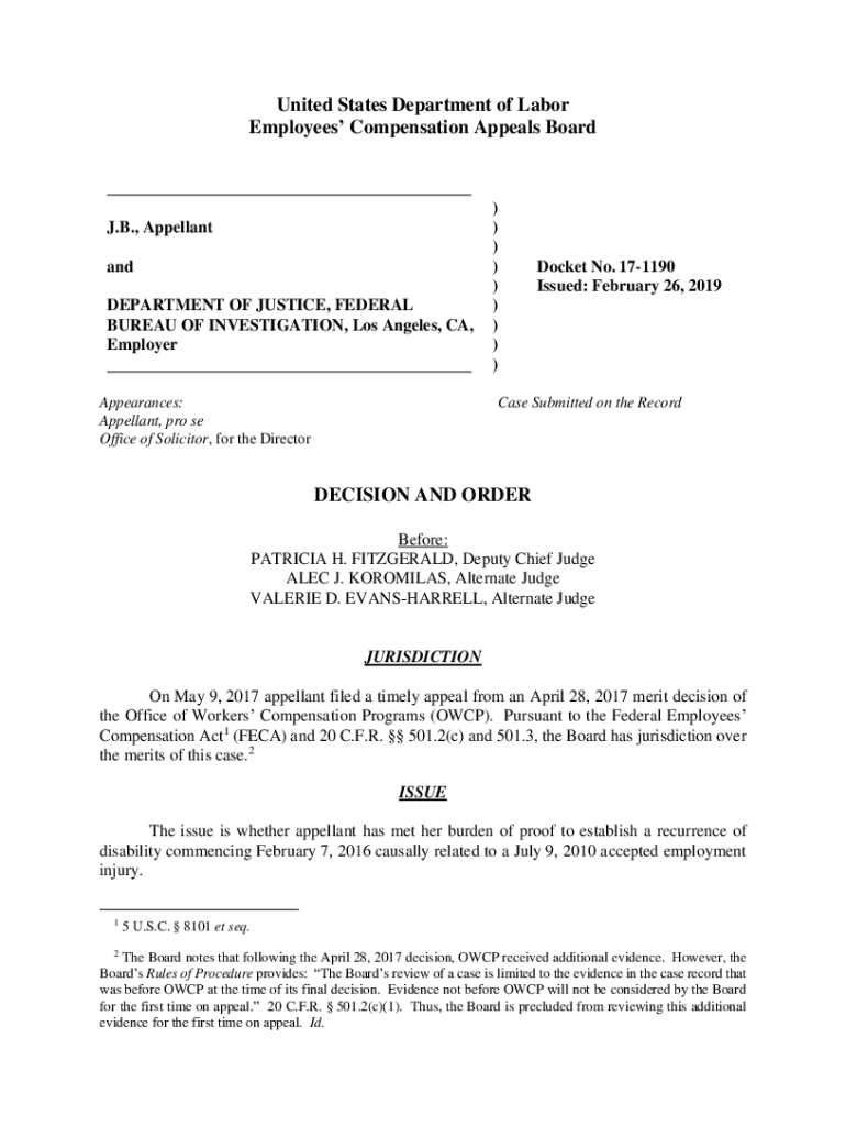 Get the free 17-1190: J.B. and DEPARTMENT OF JUSTICE, FEDERAL ...