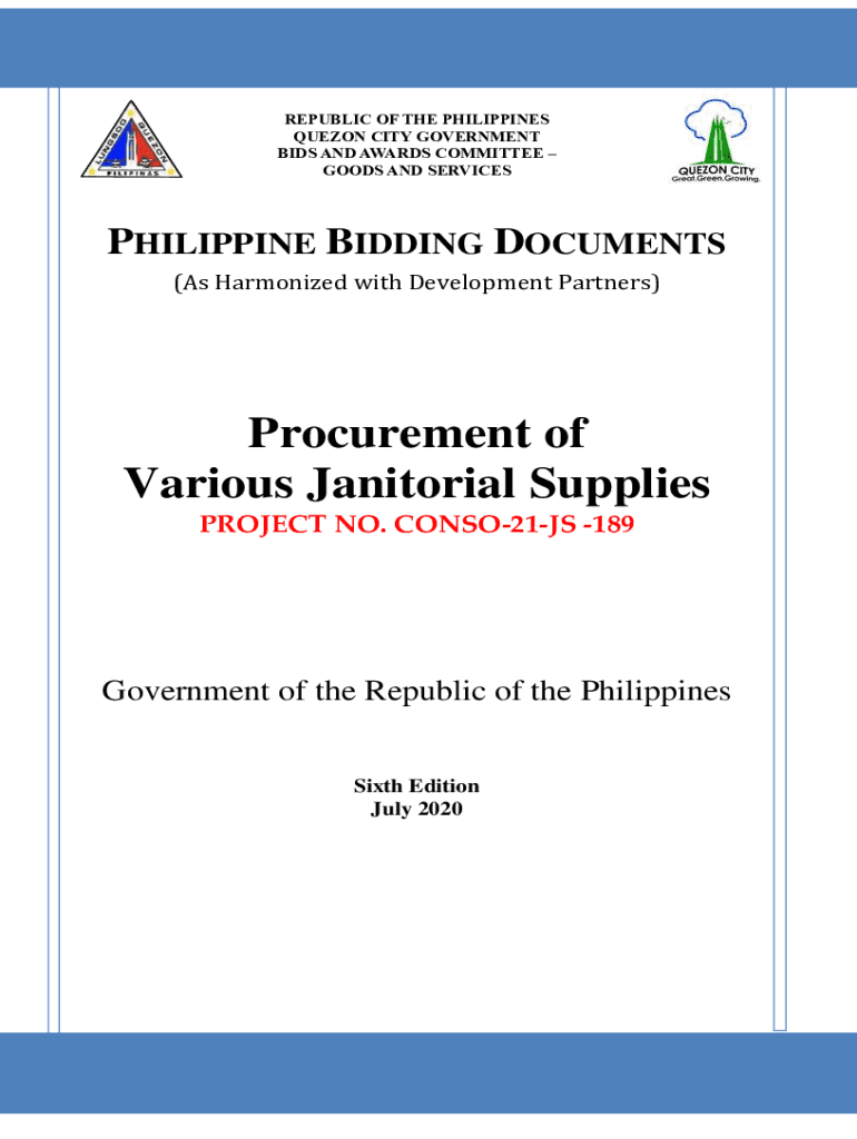 REPUBLIC OF THE PHILIPPINES QUEZON CITY GOVERNMENT BIDS AND AWARDS COMMITTEE GOODS AND SERVICESPHILIPPINE BIDDING DOCUMENTS (As Harmonized with Development Partners)Procurement of Various Janitorial