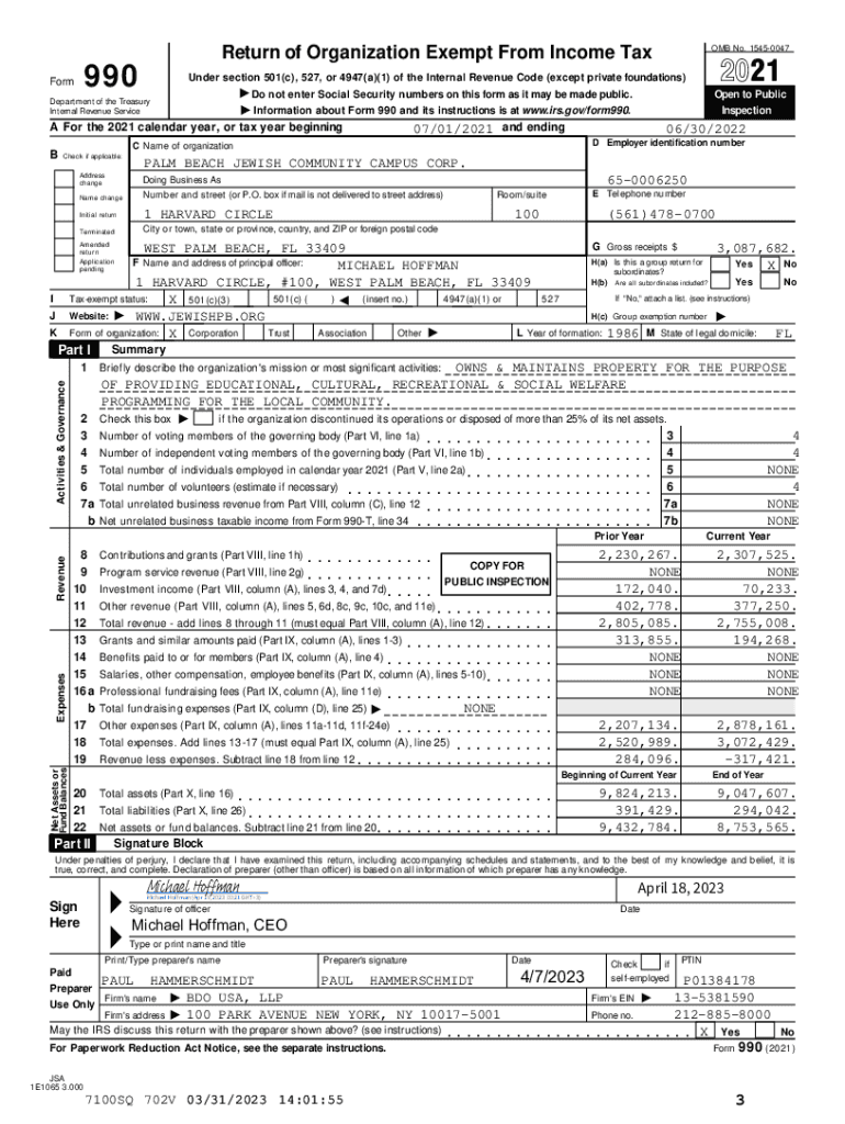 Get the free v1 PALM BEACH JEWISH COMMUNITY CAMPUS CORP.0422611BOCA RATONBUSINESS TAX 990TAX RETU...