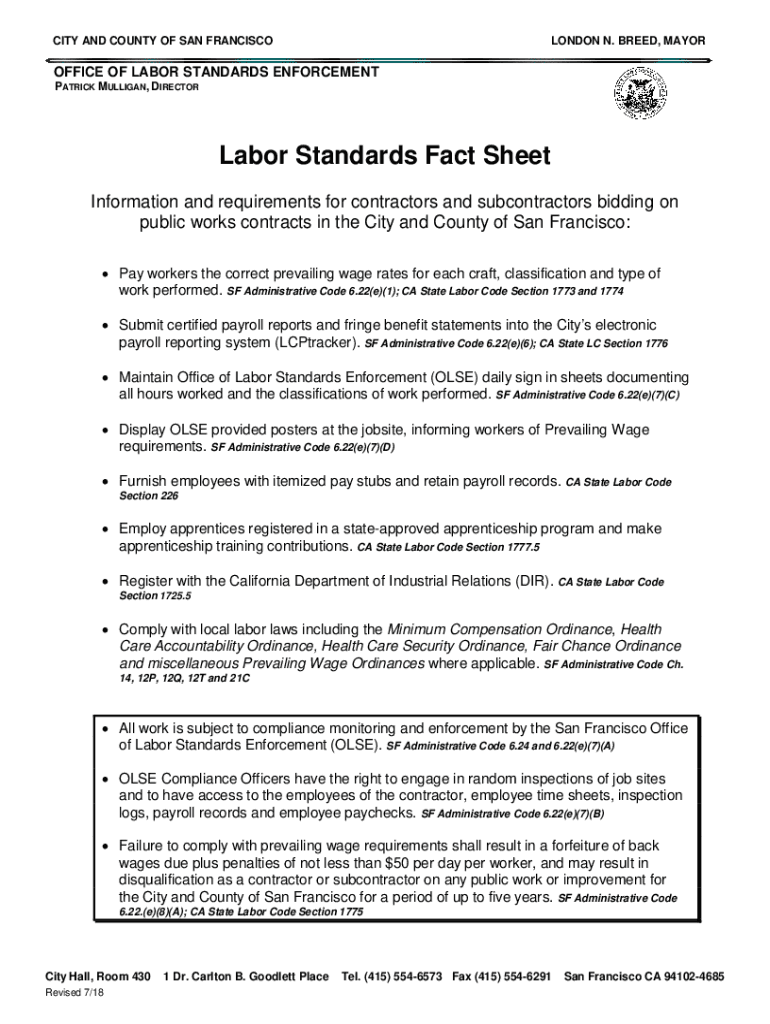 CITY AND COUNTY OF SAN FRANCISCOLONDON N. BREED, MAYOROFFICE OF LABOR STANDARDS ENFORCEMENT