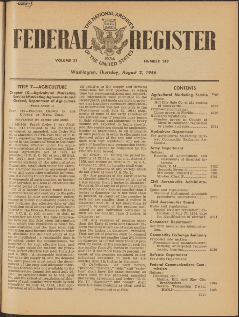 Ex o n an LBC/REGISTER VOLUME 21^/ # 1934c f? *LLTV NUMBER 149Washington, Thursday, August 2, J 956TITLE 7 AGRICULTURE Chapter IX Agricultural Marketing Service (Marketing Agreements and Orders),
