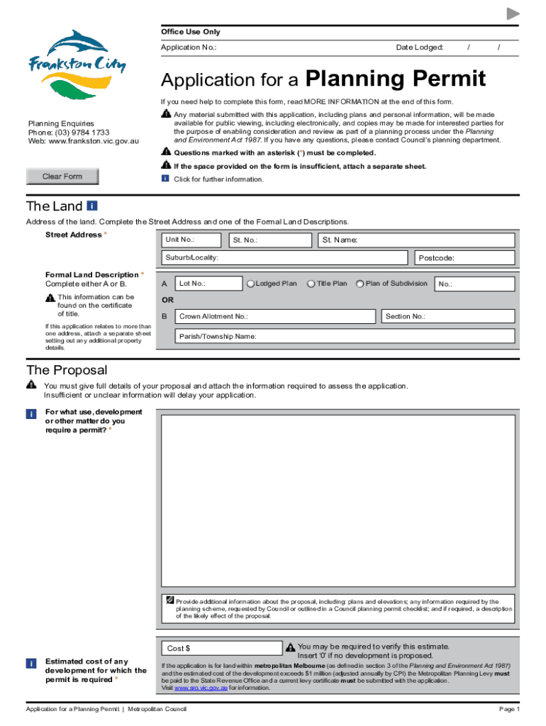 Office Use Only Application No.:Date Lodged:Application for a Planning//Permit you need help to complete this form, read MORE INFORMATION at the end of this form. Any material submitted with this